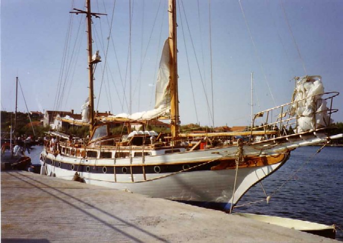 ![]() Die Viking, eine "Taiwan-Ketch", knapp 19m laaang, as you see, gutmütig und sturmerprobt, aber im Manöver sehr seitenwindempfindlich (kein Bugstrahlruder) und eine Quelle von vielen Anekdoten. Zuletzt in Triest gelegen (nach Alexandria, Sri Lanka, Male etc.) mehr Fotos ... |